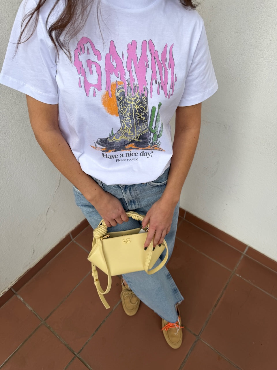 Heavy Cotton Jersey Relaxed Fit Ganni EMB bright white